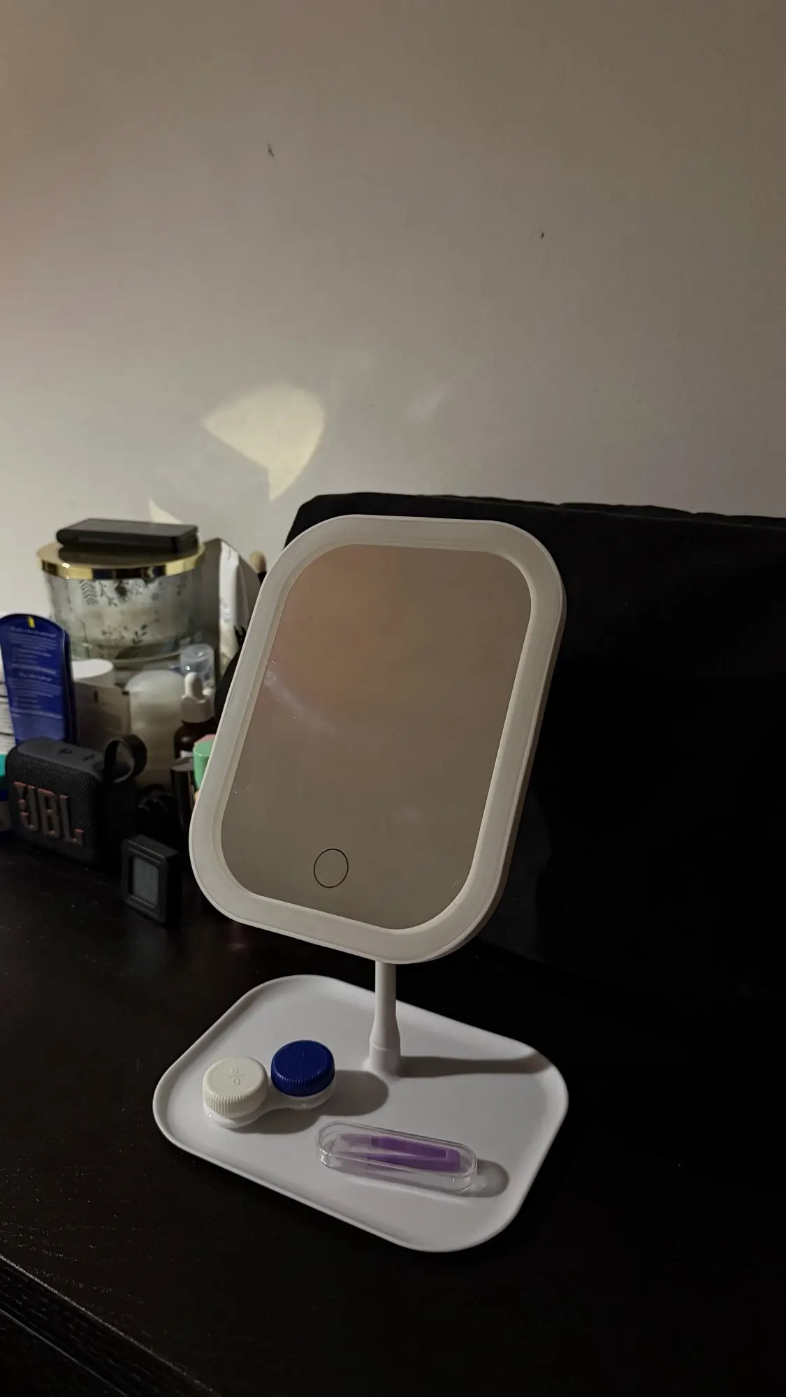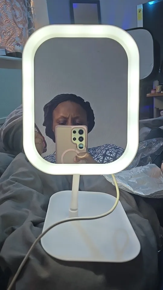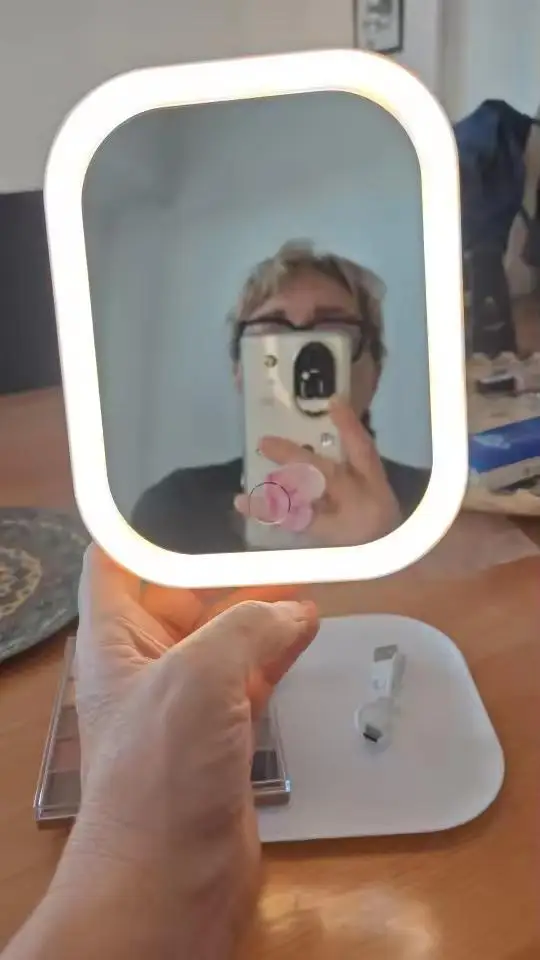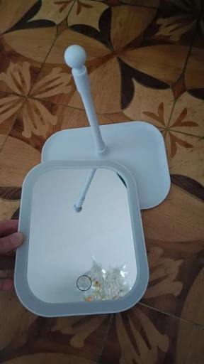 O espelho é muito resistente e possui uma textura de qualidade. Ele também possui três luzes coloridas que podem ser ajustadas, tornando-o muito conveniente de usar. O espelho oferece uma reflexão muito nítida e vem com iluminação embutida, tornando a aplicação de maquiagem mais prática. A iluminação também possui três cores que podem ser ajustadas pelo usuário, e o brilho da luz não é ofuscante, mas ilumina a maquiagem de forma excelente! Há uma bandeja de armazenamento embaixo do espelho 💕 , É conveniente colocar um batom ou blush em pó 🌸 , 🌟 E o espelho é removível. ✨ ✨ , É fácil de transportar em viagens 👍 👍