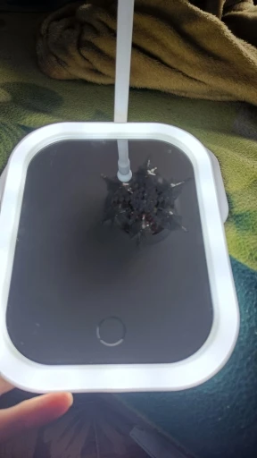A entrega levou 2 semanas, a embalagem estava amassada, o espelho estava intacto, estava carregado, possui 3 modos, é prático em um dos modos, a luz é boa.